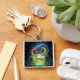 Fantasy Cute Green Dragon Egg Fyrkantig Silverfärgad Nyckelring