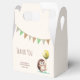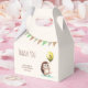 Tack för barnens födelsedag. Du föredrar en låda med en söt glad hedgehog som håller en ballong med party flagga bakgrund.
