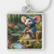 Fantasy Cute Mouse FishFlowers Fyrkantig Silverfärgad Nyckelring