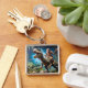 Fantasy Cute Neanderthal Riding Dinosaur Fyrkantig Silverfärgad Nyckelring
