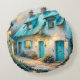 Fantasy Cute Old Blue House Rund Kudde
