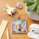 Fantasy Cute Pastel Family Sheep Fyrkantig Silverfärgad Nyckelring