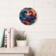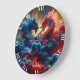 Fantasy Cute Red Blue Dragons Stor Klocka
