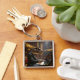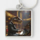 Fantasy Cute T-rex Playing Piano Fyrkantig Silverfärgad Nyckelring