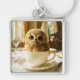 Fantasy Cute Tea Owl Baby Fyrkantig Silverfärgad Nyckelring