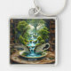 Fantasy Cute Tekopp Flytande liggande Fyrkantig Silverfärgad Nyckelring
