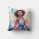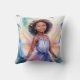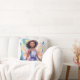 Dekorativ kudde med en glatt barnälv med färgad fjärilsmussla vingar i en flytande lila klädd, omgiven av fjärilar och mjuk, drömmande färg. Scenen förmedlar en känsla av stollig och magi i en sjudande, naturinspirerad miljö.