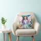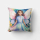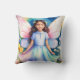 Dekorativ kudde med en ung flicka med vingar som står mitt i en levande trädgård fylld med färgstarka blommor och fjärilar. Hennes klänning blandar pastellnyanser och förbättrar scenens magiska och vismiska atmosfär.