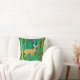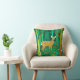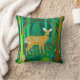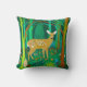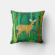 Pillow i en stiliserad illustration av en söt, fläckig fawn i en sagda skog, omgiven av träd och växter, i nyanser av brunt och grönt