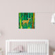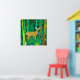 Poster i en stiliserad illustration av en söt, fläckig fawn i en sagda skog, omgiven av träd och växter, i nyanser av brunt och grönt