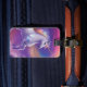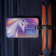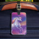Ett virrvarr av shock rosa, lila, guld och blått fyller himmel bakom denna elegant encorn med en regnbågsmane av färgad. Med djupa juveltoner och glitterviber är den här designen gjord för djärva personligheter och magiska tänkare. Anpassa baksidan och bär en biet av kosmogerna på nästa färglösa resa!