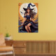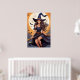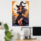 Poster av en glad ung häxa med långdraget hår rider en broomstick framför ett stort, glödande fullt måne. Fladdermus flyger runt henne, och lägger till till den förtjusande natt-scenen.