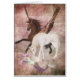 En digital målning av en brun Pegasus, vit enmajs och en färglös häst av sjöjungfru (Hippocampus), på en brun, rosa, gröntens texturerade bakgrund.
