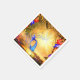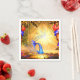 Paper party napkins with a mermaid diving below golden water with colorful flowers in fantasy image.