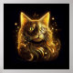 Fantasy Neon Gold Cat Sparklies In The background - Poster