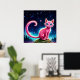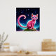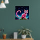 Fantasy rosa cat in magi stjärnnattskog poster