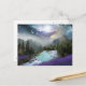 Vykort med en vacker fotomanipulation av ett scenlandskap. En flod genomkorsar en skugga av lila blommor med lush-skogar och sten-berg i bakgrunden. Himmel är fullt av stjärnor och eteriska kosmiska tittar moln. I verkligen, det magiska landskapet bilder, som ge är bekant och för naturens skönhet. Det gör att jag kan det med andra lycklig, och jag hoppas att det också för er lite glädje.