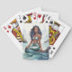 Spelkort med en sjöjungfru med ett långt, flytande hår sitta på ett skonsamt sätt vid ett sten omgivet av lugn oceanen vinkar. Tornformationerna i sten härstammar från misternas bakgrund och skapar en seren och mystisk atmosfär.