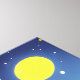 En stiliserad fantasi av Parisskylten, under ett blått, stjärnfärdigt himlar, med fullt
