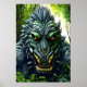 Stor fantasi-beast med skrämmande öga och vassa tänder i skogen. Det här är en AI-skapad konst.