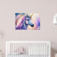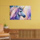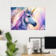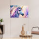 Poster med en majestätisk encorn i en drömmande bakgrund av mjuk pastel färg med en blommande mane försedd med delikata blommor, skapande en förtjusande scen.