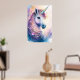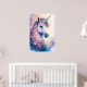 Poster av en majsmajs med ett skakande, färglöst horn avbildas mitt i en drömmande bakgrund av mjukt pastel färg. Den blommande manen är försedd med ömtåliga blommor och skapar en eterisk och spännande scen.