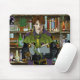A. du manliga trollkarl som håller en gammal bok med en liten grönt söt drake sitta vid bok. Baktill finns en bibliotek fylld med bokar, potioner, kauldron, kristaller boll och växter.