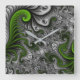 Fantasy World Grönt and Grått Abstrakt fractal Art Fyrkantig Klocka
