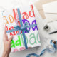 Denna papper har ord "Pappa" som upprepas i olika typsnitt och olika färg i hela konstruktionen. Roligt och ljus.