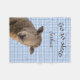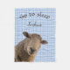 Får - nära söta får på blå gingham med Gå till Vilo i brunt teckensnitt. Använda mallen som du vill anpassa med ditt namn eller meddelande.