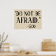 Det här är en ljusbeige färg poster med ett kraftfullt citat som tryckts i stort svart brev och som lyder: "VARA INTE AFRAID. -GOD."