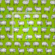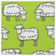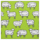 Ett upprepande mönster som består av små får av tecknad tittar lite varsel medan andra äter gräs.