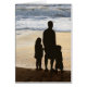 En man med sin dotter och son står på vatten kant och tittar på sol. Lägg till din egen text för ditt eget meddelande.