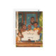 Anpassadet vykort är underbart för mor dag eller för att uttrycka familj-fullt till dina vänner och familj. I det här mönstret finns det en afrikansk-amerikansk far, hans tre barn och deras hund sitter på porten med en banderoll med ett meddelande som du kan anpassa.