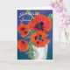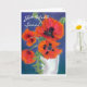 Ett kort "få för brunn snart" med en vitvas av scharlakansröda vallmor, från en pastellfärgad målning för originalolja av Judy Adamson. Förbigå insida för ditt egna meddelande. Se också 'ålder-närmare detalj Födelsedagskort- och "tack" kort med detta planlägga.