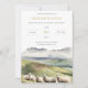 Denna inbjudan har en original digital vattenfärgsillustration av en flock höglandsfår med en lugn bergsbackgrund.