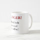 Kaffemugg med "fara! Svart bälte i behov av kaffe!", logotyp