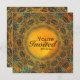 Vacker inbjudan till fest med en forntida egyptisk känsla. Den vackra designen på både framsida och baksida visar vackra abstrakta ugglor i gyllengult och levande blått med många fjäderdetaljer. På framsidan av inbjudan står texten "You're Invited" i mitten. Baksidan visar samma mandala men med ett större utskuret område för att passa all text du behöver för ditt evenemang. Klicka på anpassa för att kunna välja olika färger och typsnitt och för att kunna flytta runt texten för att passa dina festbehov.