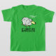 Lustigt t-shirt med ett fårexempel. Roligt tecknad stil illustration av ett får som går "moo". Fårantagsionist som personifierar en ko. Fårskjorta.