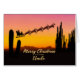 Ett julkort till din morbror som visar tomten flyga över öknen. Många kaktus ses i silhuette. Önska en god jul från öknen med ett vackert färgad.