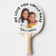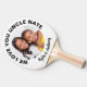 Ge är den bäste morbror någonsin en roligt gåva med den här anpassningsbarna pingpongpaddeln med ett favoritfamiljefoto av hans systerbarn och nieces, deras namn och "Bästa morbror någonsin" i vit typografi.