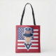Tote-väska med illustration av farbror Sam med den amerikanska flagga som bakgrund, 4:e juli patriotisk design av Maxi Harmony/Radka Kavalcova, röd version