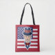 Tote-väska med illustration av farbror Sam med den amerikanska flagga som bakgrund, 4:e juli patriotisk design av Maxi Harmony/Radka Kavalcova, röd version