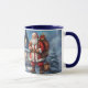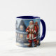 Den klassiska vintagen mugg med bilden av Jultomten är en beundransvärd bild av helgdag cheer. Jultomten, i sitt koniska röda kostym med vit trim, ses med ett leende och ett vänligt ögon som utstrålar godhet och glädje. Hans runda mage, som vittnar om hans hjärtliga natur, är täckt av ett stort gyllene bockle bälte. I sitt dystra händer har han en säck som flödar över med vackert förpackat presenter, redo som ska levereras. Bakgrunden är en serenvinter-natt, himlar som är målad med djupblåa nyanser och prickad med mousserande stjärnor. Måne skiner mycket bra och kastar en försiktig glöd på det snö-täckta landskapet. Snöflingor faller försiktigt och täcker jorden i ett pristiskt vitt lagrar. I vintern är underlandet ett mysigt arv som ger värme och komfort. Kägget, med sina stenmurar och det tjuvda tak, är kantat av ljus med två jular. Rökande dammar ut från skorsten, vilket tyder på en groande brand inuti. Fönstren är varma och inbjuder till ljus och skapar en stark kontrast mot kallet vinternatt. Denna klassiska vintage bild i Jultomten och en mysigt stuga på en vinternatt är en del av julens innersta väsen - värme, glädje och förväntan på ge och mottagande gåvor.