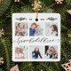 Skicka en vacker personlig till dina morföräldrar som de kommer att ta hand om för evigt. Fotokollage för barnbarn i speciell personlig är ett ornament för att visning dina egna speciella familjefotografier och -minnen. Vår design har en enkel 6-fotosamlingsladd med "Grandchildren" designad i ett vackert handskrivet svart skript stil. Anpassa med barnbarns namn på baksidan av prydnaden.