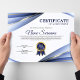 Hedra prestation med elegans med denna mall för certifikat för prestation i blått och guld, som är utformad för att presentera prestationer med professionalism och distinktion. Med en raffinerad vågdesign i blå gradient med lyxiga guldfärgade accenter skapar detta certifikat en polerad och sofistikerad look som är perfekt för att erkänna excellens i skolor, kyrkor, företag och samhällsorganisationer.