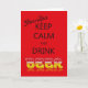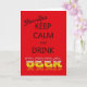 Ett lustigt kort som uppmanar dig till behålla lugn och dricka öl på din födelsedag. En sked på internetminnet.
