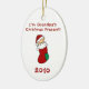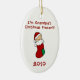 Du kan personifiera baksidan och ändra datumet på det här söta baby första julprydnad med ett baby i en röd julklapp och stil text med texten "Jag är morfars Julklapp!"