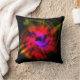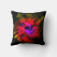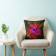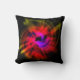 En kudde med en färgfull abstrakt som vrids mot en svart bakgrund.