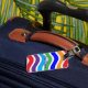 Anpassningsbarnas bagagemärken. Färgfull mönster. Redigera namn om du vill anpassa. Gift idé.